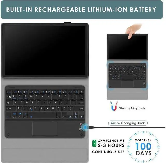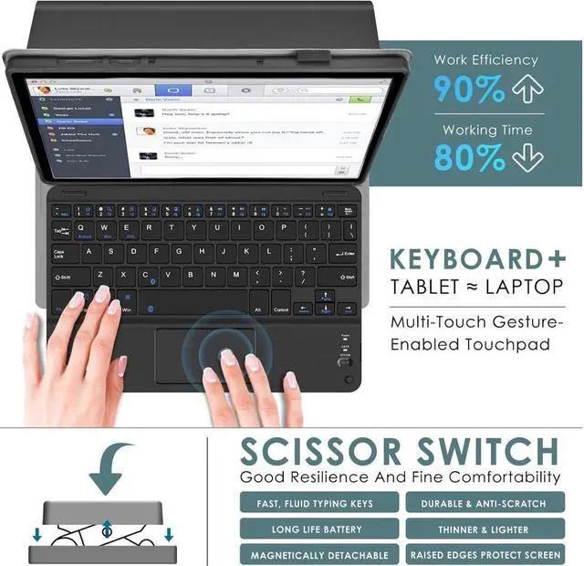 Detachable Keyboard with Touchpad Function --- The keyboard design with Touchpad.The built-in touchpad can allow you to control the cursor like a laptop, which is convenient for studying and working.The magnetic keyboard is removable and can make it easy to put the Tablet and keyboard in a comfortable position.