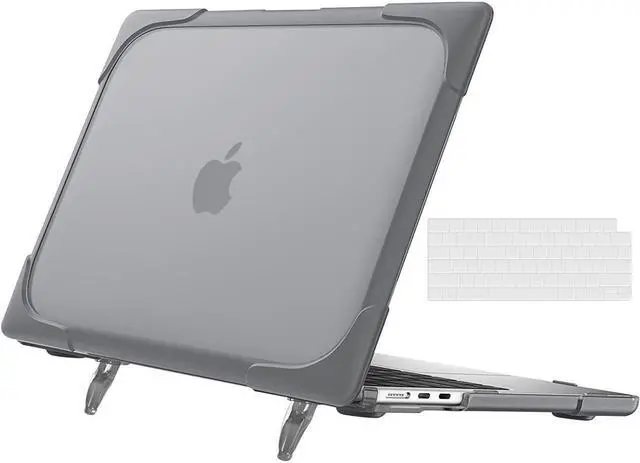 No cut-out design, Apple logo shines through the case; Built-in foldable stand provides an ergonomic typing angle and a better visual experience, helpful to relieve your neck strain