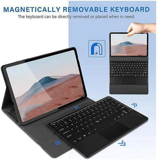 Detachable Keyboard with Touchpad Function --- The keyboard design with Touchpad.The built-in touchpad can allow you to control the cursor like a laptop, which is convenient for studying and working.(Notice: To use the keyboard touchpad, Please go to the iPad accessibility setting to turn on the assistive touch function first!)The magnetic keyboard is removable and can make it easy to put the iPad and keyboard in a comfortable position.