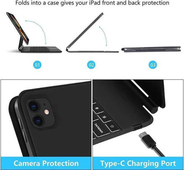 -- Auto Sleep/Wake & Support Wireless Charging for Pen & Multi Angles -- Magnetic auto sleep/wake feature works smoothly to help extend your iPads battery life. Automatically wake or sleep when the lid is opened or closed. Easy operation and energy-saving. Case supports 2nd Gen Apple Pencil wirelss charging, you don't need to take off the case. Feel free to adjust the best viewing position by remove keyboard and adjust the iPad screen. Perfect for watching, reading, working or playing games