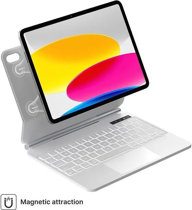 Floating Magnetic Design: With the Bluetooth keyboard case for iPad 10th Gen slightly floating design, strong magnetic suction to ensure the safety of your equipment. Ergonomically [adjustable 135° angle], you can choose the most comfortable tilt angle to use your iPad. The opening and closing of the iPad keyboard also adopts the magnetic suction method and has automatic sleep and wake functions.