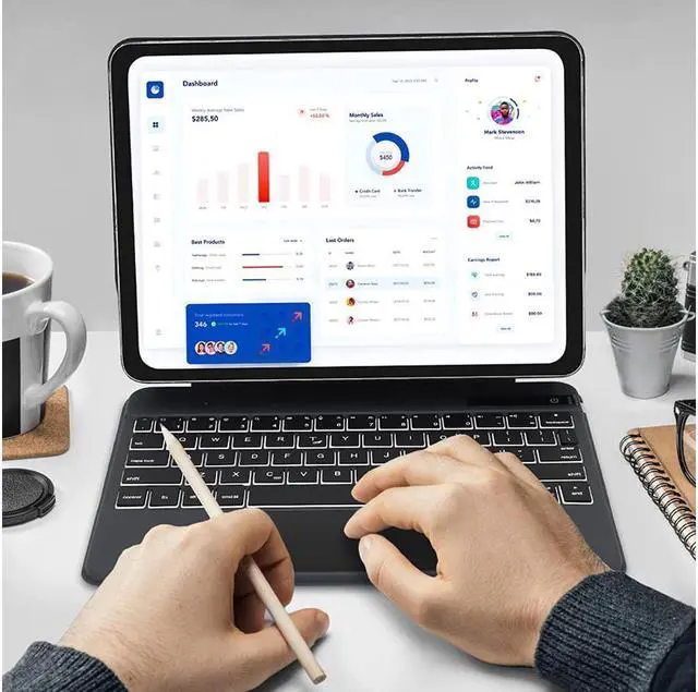 The built-in touchpad allows you to navigate and control the cursor like a laptop, no need have to touch the screen or additional mouse. It delivers a comfortable user experience while allowing you to tap, scroll, and swipe through content effortlessly.