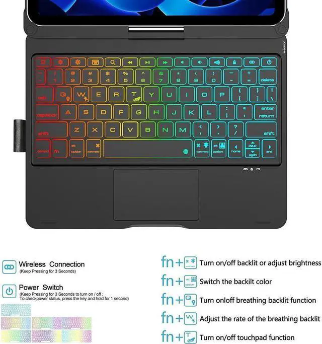 7 Colors Backlit: This premium keyboard case for iPad 10th Generation 10.9 have 7 backlight colors and multiple breathing rates. You can adjust the color of the backlight and the breathing rate according to your hobbies to make your life more comfortable.