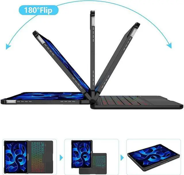 From Tablet to Laptop: Through our keyboard case, you can easily turn your tablet into a laptop. Backlit keyboard has basically the same equidistant keys, shortcut keys and built-in touch pad as laptop, very comfortable to use.