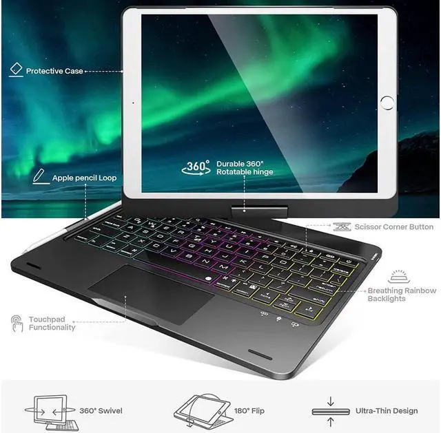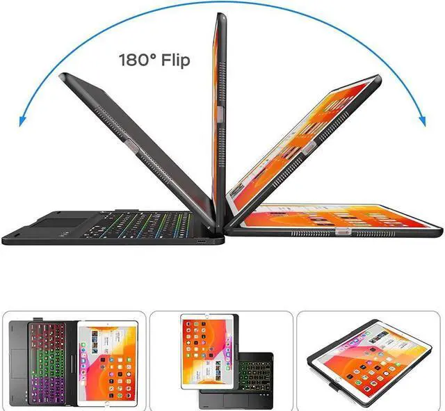 SUPPORT 360° ROTATABLE & 180° FLIP: This iPad keyboard case support 360° rotation, 0-180° infinite view angle to ensure a comfortable viewing angle - Typing, Reading, Gaming - giving you amazing versatility. Easily adjusts to whatever comfortable angle suits you best. Perfect for working, writing, or watching videos at work, school, travel and home.