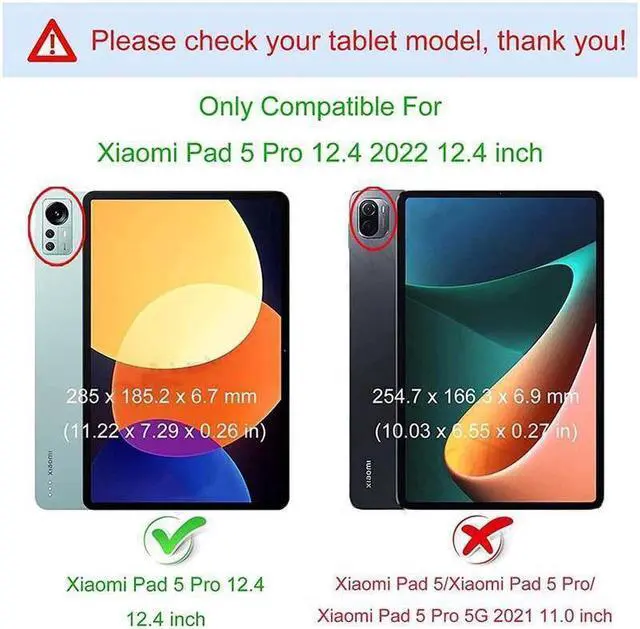 Compatibility: Only for Xiaomi Mi Pad 5 Pro 12.4 2022/ Xiaomi Pad 5 Pro 12.4 inch 2022. It is Not fit to any other devices. Please kindly check the model number in the settings before purchase.