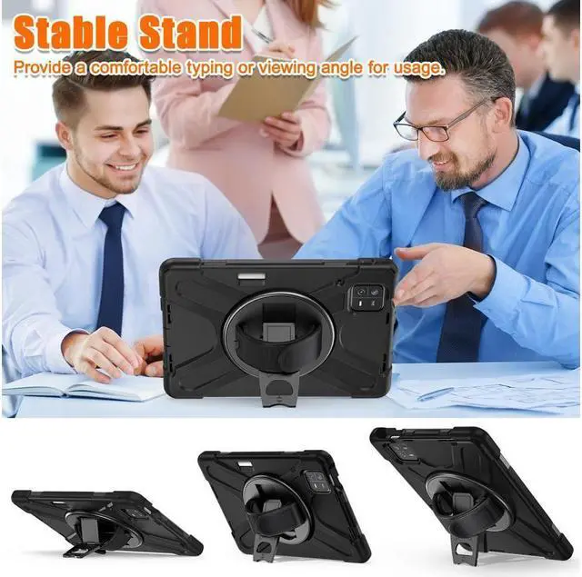 360° Swiveling Stand & Hand Strap: Located on the back of shockproof case, built-in 360 degree rotating kickstand and adjustable handle hand strap provides a more flexible and convenient way to use your tablet during work, study or journey, ideal for students,teachers,engineers,cashiers and waiters,etc.