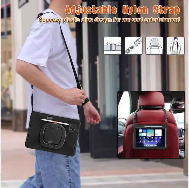 Adjustable & Detachable Carrying Strap: Portable Shoulder Strap allows to carry your tablet in landscape/portrait mode securely in outdoors or hang your tablet in kitchen,bedroom,car seat for convenient usage.