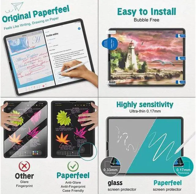 Including One Piece of Paperfeel Screen Protector: Touch, matte surface, anti-fingerprint, anti-glare, ultra-thin and case-friendly, bubble-free, easy installation; The Paperfeel surface gives the touch and resistance of paper to a drawing or writing tablet; A precise cut will not affect your Face ID authorization.