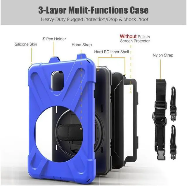 [Material Structure] This Samsung Galaxy Tab Active 2 case is made of premium hard plastic and soft silicone. belong to heavy duty rugged case, three layer structure provide good protection from drop and impact.Precise cutout design,easy to access all features without removing cases.