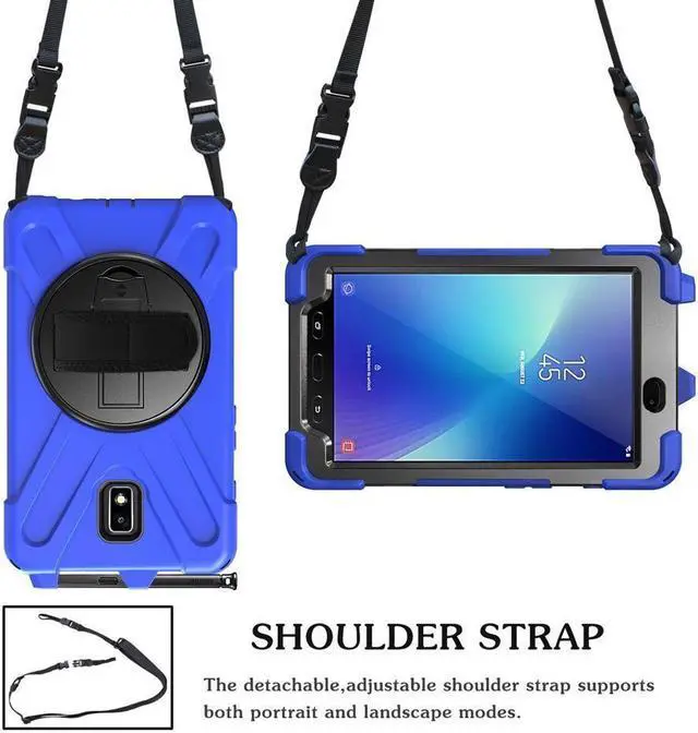 [Flexible Shoulder Strap] By attaching strap to any two holes and adjusting to a convenient length, your Galaxy Tab Active 2 Tablet can be carried vertically or horizontally in a more secure way during any outdoor activities.