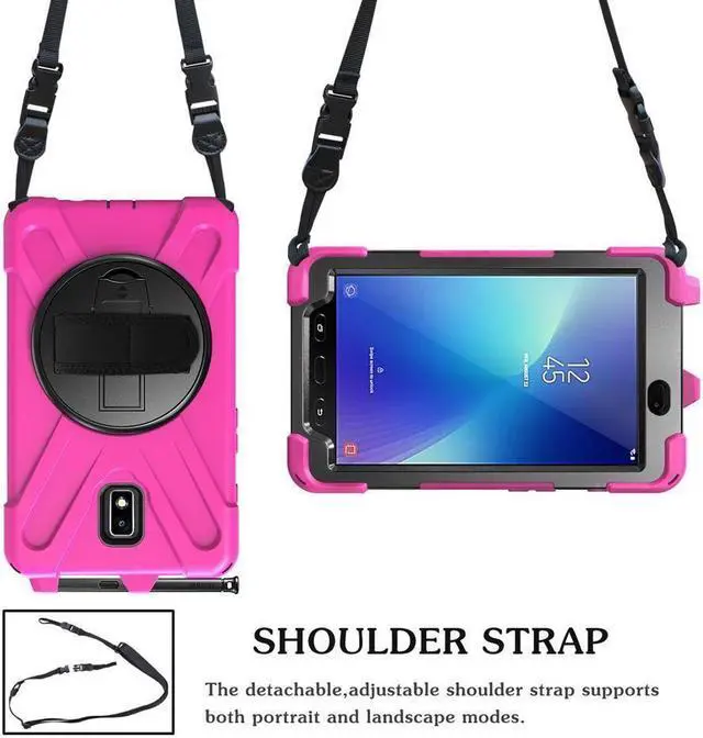 [Flexible Shoulder Strap] By attaching strap to any two holes and adjusting to a convenient length, your Galaxy Tab Active 2 Tablet can be carried vertically or horizontally in a more secure way during any outdoor activities.