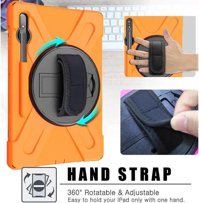 [360 Degree Rotating Stand]: 360 degrees rotatable kickstand & The adjustable hand strap for better experience with your iPad. Convenient for watching videos, conferences, construction and outdoor work.