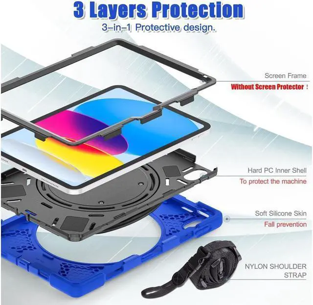 Made of kid-friendly,non-toxic and shock absorbing Silicone, its three layer structure design provide a good full body protection from drop bumps, and shock; Built-in Anti-scratch Screen Protector protect your iPad from being scratched.