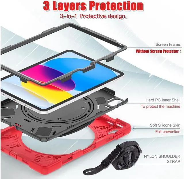 Made of kid-friendly,non-toxic and shock absorbing Silicone, its three layer structure design provide a good full body protection from drop bumps, and shock; Built-in Anti-scratch Screen Protector protect your iPad from being scratched.