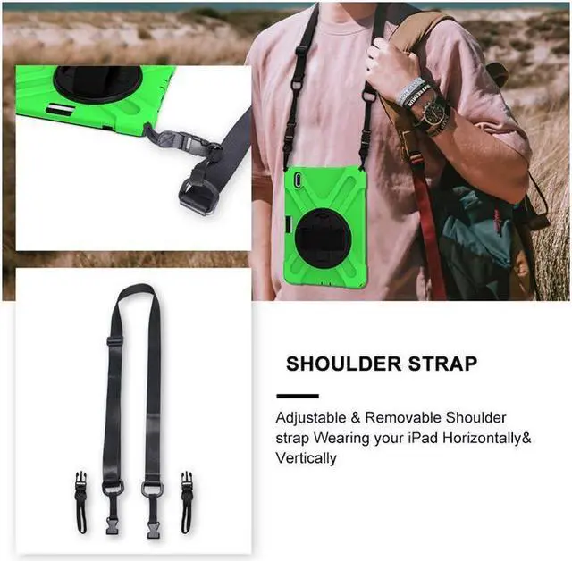 360 degrees rotatable kickstand & The adjustable hand strap mechanism for better experience with your iPad. Ideal for kids, students, teachers, Outdoor Workers or anyone else who needs it for presentations, conferences and travelling.