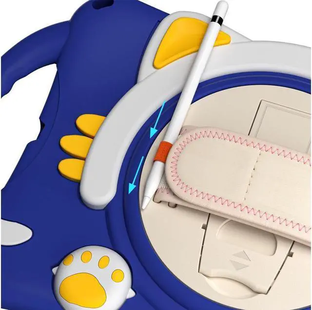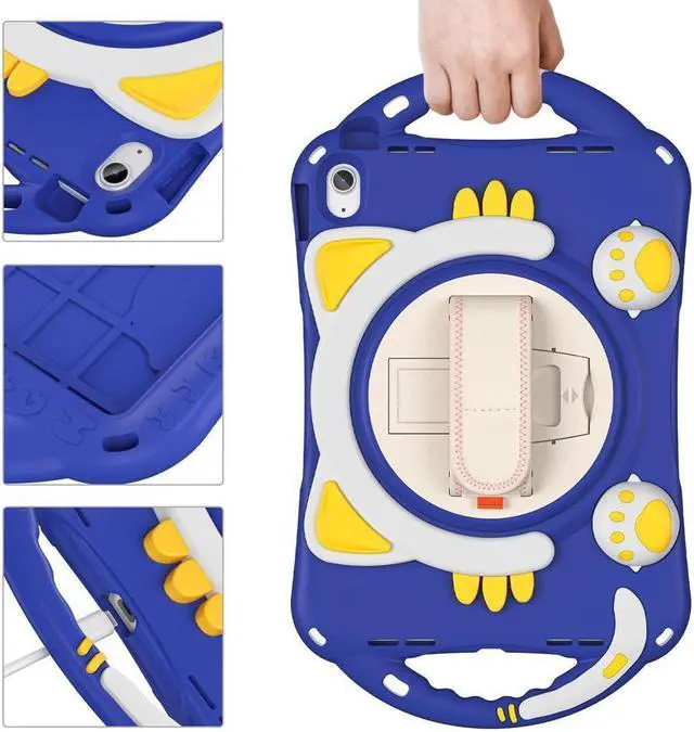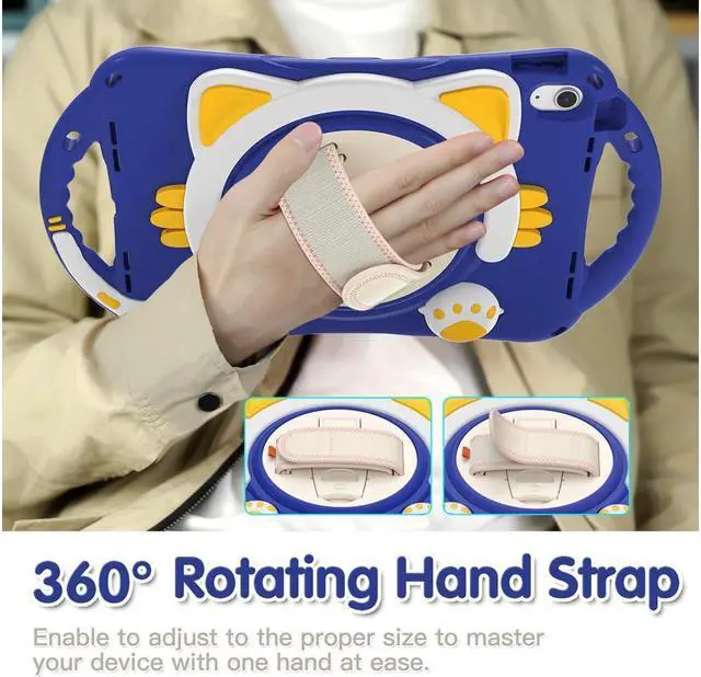 Built-in 360 degree rotating kickstand and adjustable hand strap provide a more flexible and convenient way to use your iPad, ideal for boys,girls,children.