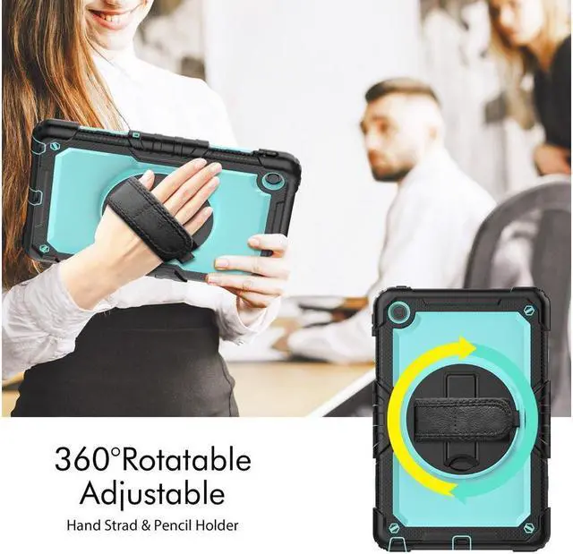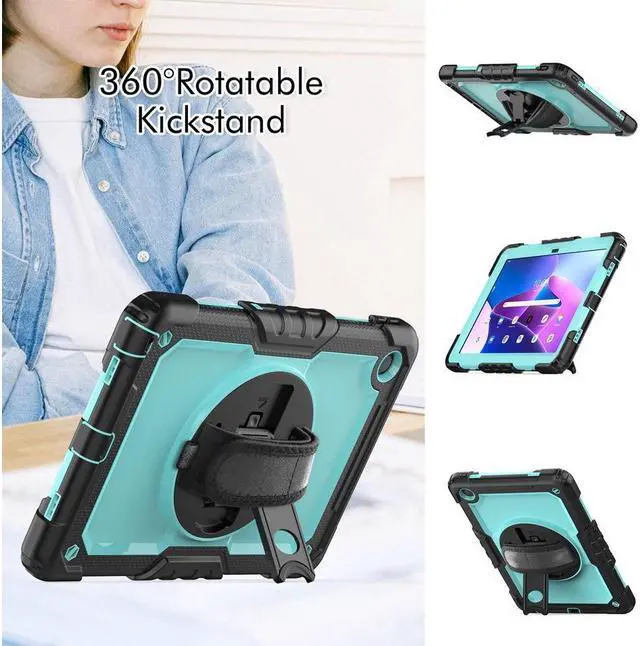 [360 Degree Rotating Stand & Hand Strap]: - This Lenovo tab M10 Plus 3rd Gen 10.6 case is designed with a 360 degree rotating kickstand and hand strap. The kickstand allows you to adjust the tablet to multiple angles freely to meet your most comfortable viewing and typing angles. While the hand strap allows you to hold your tablet securely with single hand, and let your other hand free to do other things.