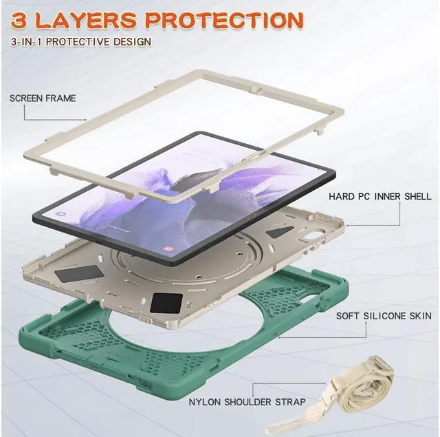 KEY_TAB KEY_TAB KEY_TAB Shockproof and durable. 3-layer structure protection, 2-layer heavy PC covered with 1-layer anti-skidding silicone. Perfect cutouts for speakers, cameras, and other ports. Against accidental drops, scratches, and dust.