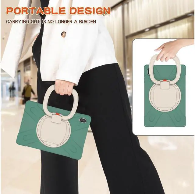 KEY_TAB KEY_TAB KEY_TAB Convenient. A 360-degree rotating kickstand comes with a hand strap, soft shoulder/neck strap for carrying around. Easy for you to hold or use in all directions, ideal for kids, students, teachers, engineers, and waiters, etc.
