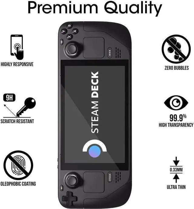 EXTREMELY HIGH HARDNESS --- Made with high-quality 0.3mm thick premium tempered glass exclusively for Steam Deck. 9H tempered glass screen protector perfectl fit with your Steam Deck. Precise laser cutting size provides maximum protection for the entire touchscreen surface of your Steam Deck, scratch-resistant and blowout-resistant.