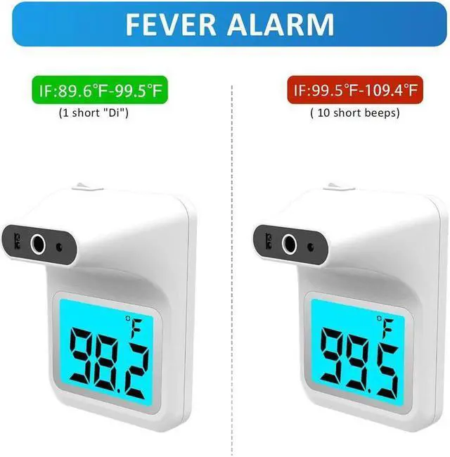 QUICK and ACCURATE - Our wall-mounted thermometer for adults automatically measures body temperature in less than a second using rapid measurement technology. Body temperature is detected within 2-4 inches from the wall thermometer. The measurement accuracy is controlled at ≤ ± 0.4 / ≤ ± 0.2. A flashing red light and the audible alarm indicate that the person has a high temperature.