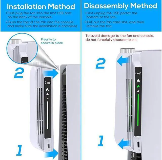 Compatibility: The accessories is compatible with PS5 Disc and Digital Edition. Whether your console is placed horizontally or vertically, it can be installed on the side to assist heat dissipation