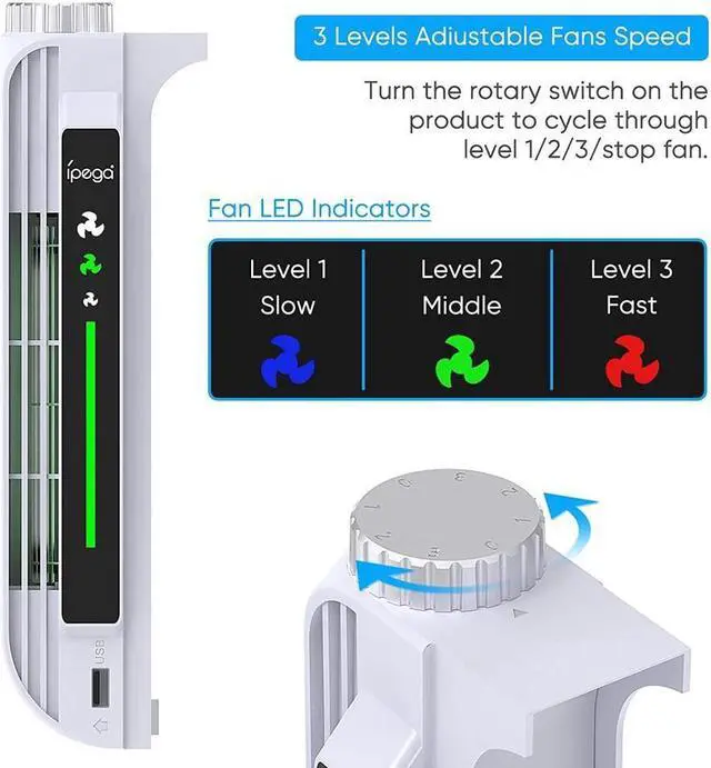 3 Adjustable Gears: Adjust the gear according to different needs, Slow/Middle/Fast. No need to worry about your console overheating