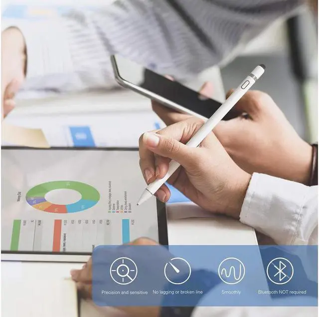 User-Friendly Design --- This Stylus pen feels Like a real traditional pen and it is slim and light. Use this pen for iPad to draw, write or take notes directly on iPad /iPad Pro/iPad Mini/iPad Air/iPhone, Samsung, Smart Phone, Tablet or other touch screen devices just need to press the button once (Blue light on). drivers or Bluetooth settings NOT REQUIRED.