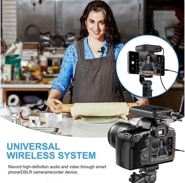 • Wireless Lavalier Microphone Professional UHF Wireless Mic System for DSLR Cameras,iPhone,Android Smartphones,Video Recording,Vlogging, Interview, Teaching,328' ft Audio Range