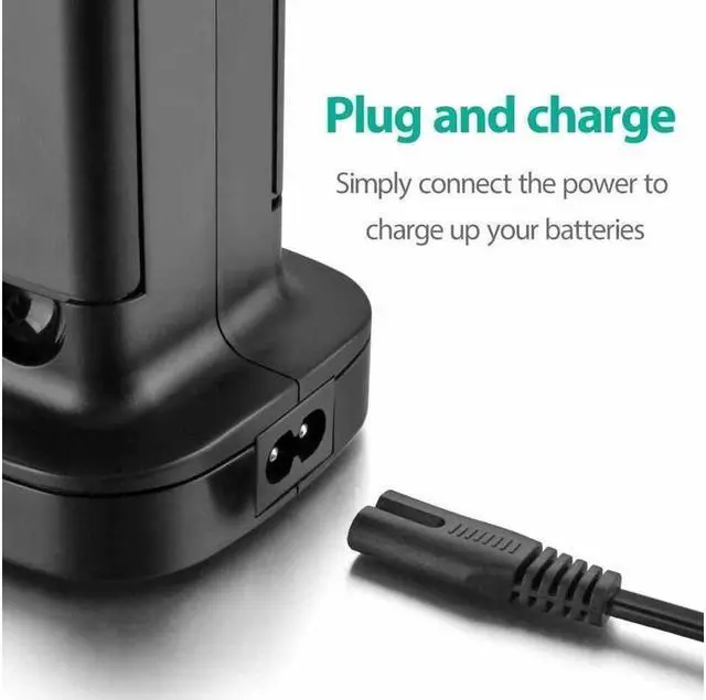 Docks both of your rechargeable batteries. LED light indicator shows the batteries charging status.Battery Charger:Input: 110 ~ 240V AC / Output: 2.8V DC.