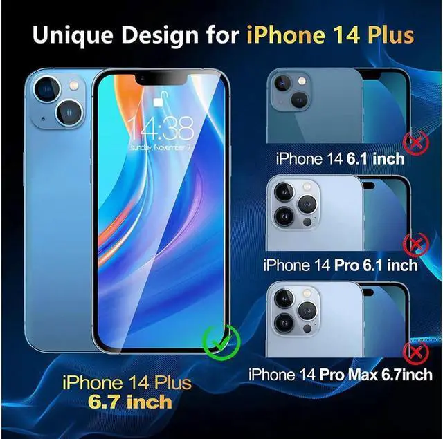 Compatibility: This iPhone screen protector is compatible with iPhone 14 Plus 6.7 Inch 2022. Please make sure you have checked the iphone model before payment.