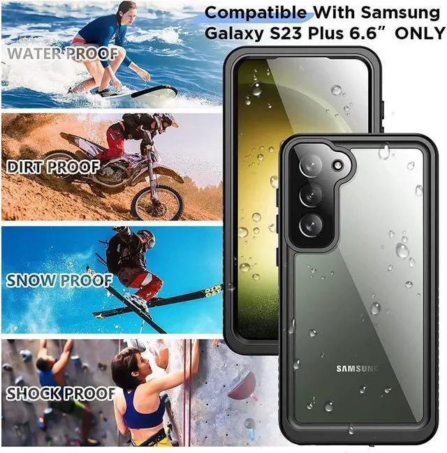 IP68 Waterproof: This waterproof case ONLY designed for Samsung Galaxy S23 Plus Case 2023 New. The S23 Plus Case is IP68 Waterproof Certified, submerged to 6.6'/1.5 m for 30 minuites. And the Galaxy S23 Plus Case is perfect for outdoor activities like swimming, snorkeling, surfing and more. We suggest doing waterproof test to the case, before taking it into water with a phone in it. What's more, wireless charging compatible.