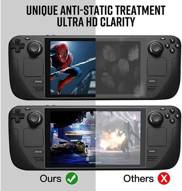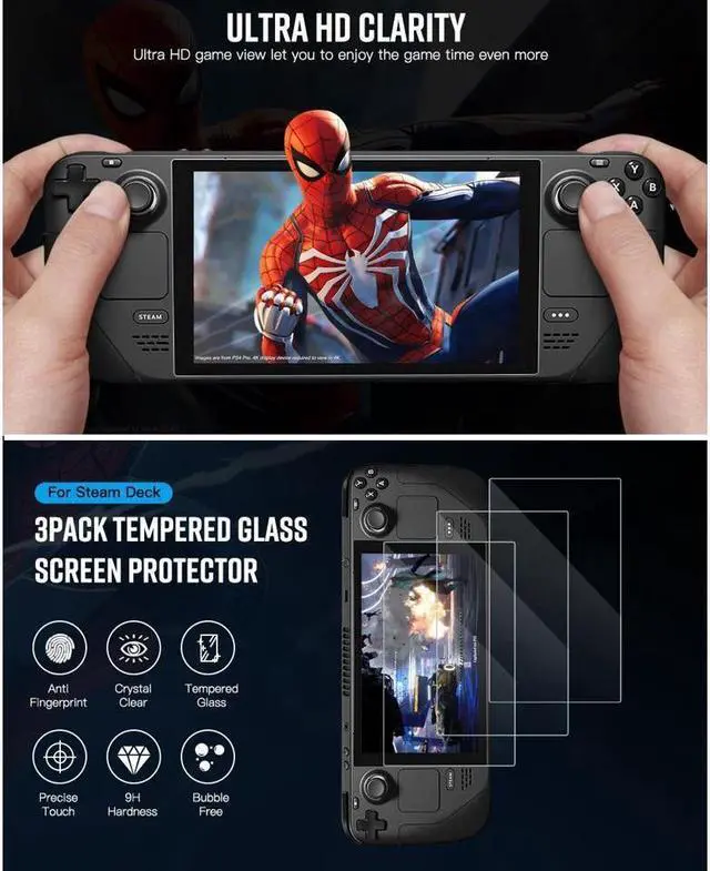 Anti-Scratch]: The Premium tempered glass with industry-high 9H hardness rating effectively protects your Steam Deck against scratches, keep it clean with a simple wipe.