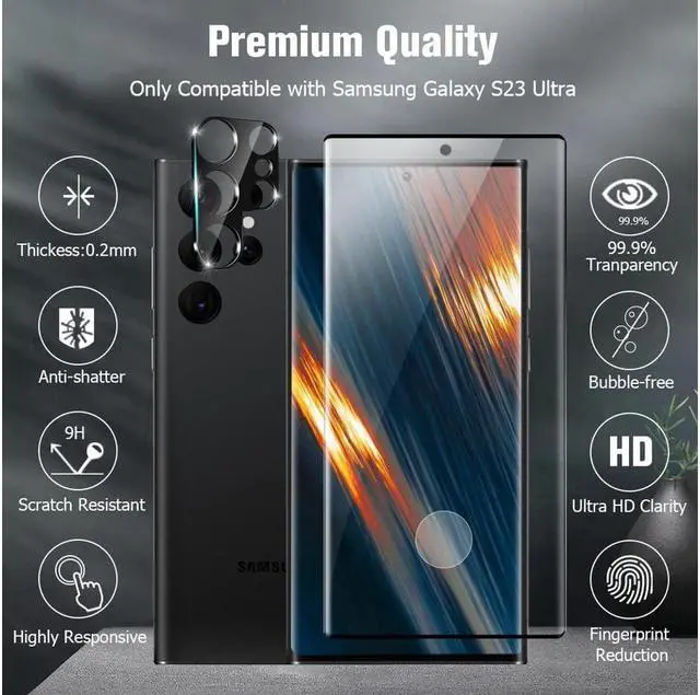 ![Alt view image 7 of 7 - [2+2 Pack] Galaxy S23 Ultra Screen Protector, 2 Pack Camera Lens Protector , Ultrasonic Fingerprint Support, 3D Curved,HD Clear 9H Tempered Glass Screen Protector, For Samsung Galaxy S23 Ultra 5G (6.8](https://c1.neweggimages.com/productimage/nb640/BA9ZD2310240JXHNT0E.jpg)