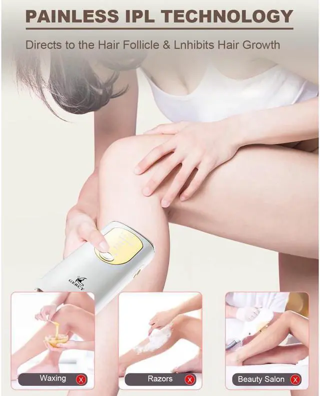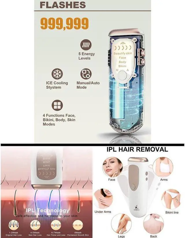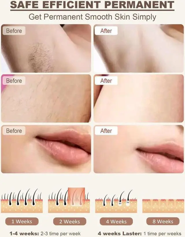 Painless & Permanent Hair Removal: We uses upgraded Intense Pulsed Light (IPL) technology to accurately irradiate the depths of the hair follicle to break the cycle of hair regeneration and is certified by the Skin Health Alliance dermatology to be gentle, painless, and without any side effects. Clinical results prove that using After 8 weeks your skin will be smooth and achieve permanent hair removal