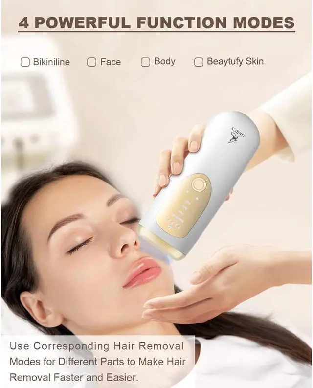 Innovative Face, Bikini, Body, Skin four special modes, choose the corresponding mode for different body parts, precise treatment, can completely achieve the effect of whole-body hair removal within 6-8 weeks.