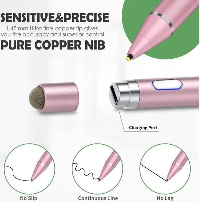 2-IN-1 TIP DESIGN - Enjoy the best stylus pen with our practical 2-in-1 tip design. The ultra-fine 1.45 mm copper tip delivers precise lines and strokes, while the mesh tip offers a smooth and responsive alternative for broader strokes and shading. And if your stylus pen runs out of power, you can still use the mesh tip to continue creating. Whether youre taking notes, drawing, or navigating your touch screen device, our stylus pen delivers the precision and control you need.