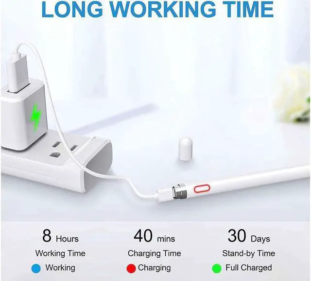 LONG BATTERY LIFE - Dont settle for cheap imitations - choose the stylus pen for high quality and long-lasting performance. Our stylus pen supports 8 hours of continuous use and 30 days of standby time on a single 40-minute charge. And with an automatic power-off feature after 30 minutes of inactivity, you can be sure your battery will last.