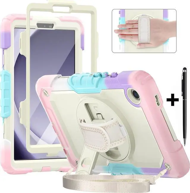 Shockproof + Screen Protector:This Tablet Case is designed with durable anti shock material, soft silicone, hard plastic shell and built-in screen protector. This sturdy case can keep your tablet safe from shock, drop, scratch or accidental damages in daily use.