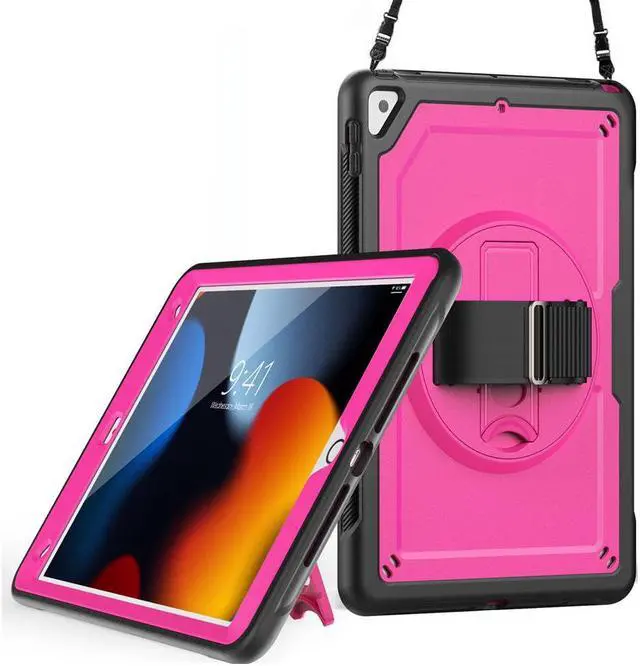 • 360° Rotatable Kickstand + Hand Strap: iPad Case, with 360° rotating Swivel & Sturdy stand, supports position of 3 angles (30°/45°/60°), allows to place iPad case according to needs. Come with an adjustable handle strap, can preventing falling or slipping