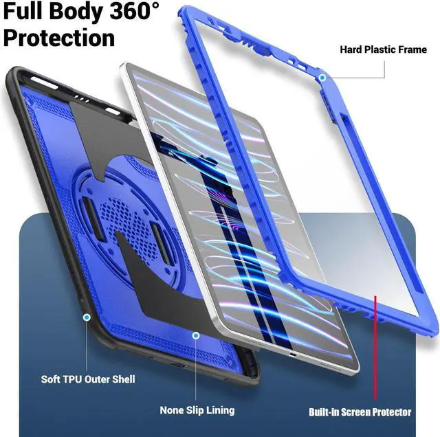 Full Protection with HD Screen Protector: This iPad Case with Full-Screen Protector + Silicone Outer Shell + Hard PC Back Cover, can withstand shocks and drops up to 15ft, providing Your iPad full-body protection.