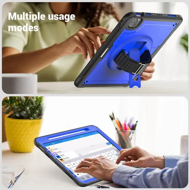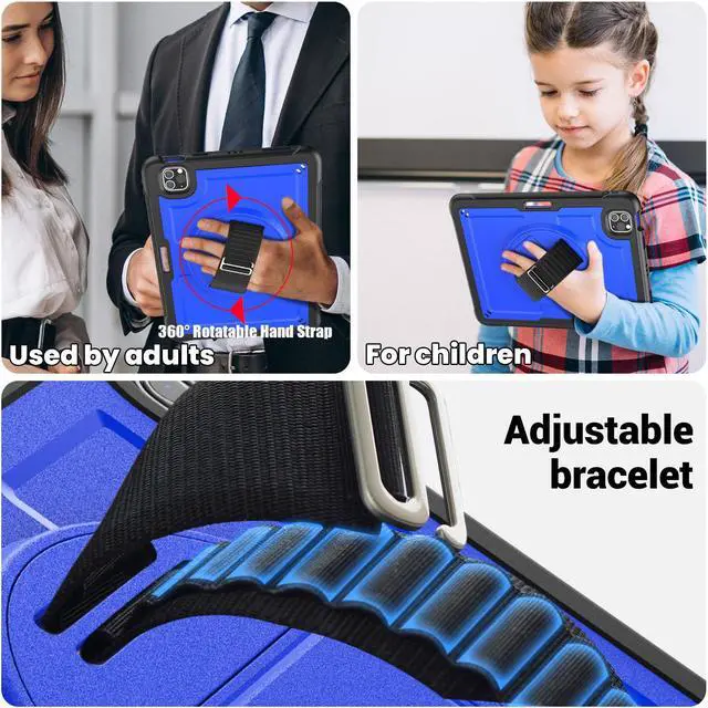 360° Rotatable Kickstand + Hand Strap: iPad Case, with 360° rotating Swivel & Sturdy stand, supports position of 3 angles (30°/45°/60°), allows to place yoour iPad according to needs. Come with an adjustable handle strap, can preventing falling or slipping.
