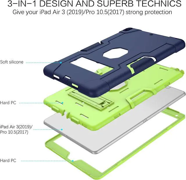 Compatibility --- ONLY Designed for Apple iPad Air 3rd Gen 10.5 Inch 2019 (Model: A2123 / A2152 / A2153 / A2154) and iPad Pro 10.5 Inch 2017 (Model: A1701 / A1709 / A1852), [No Screen Protector]. We recommend that you check and confirm the iPad model before purchase.