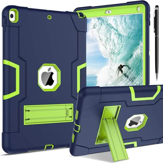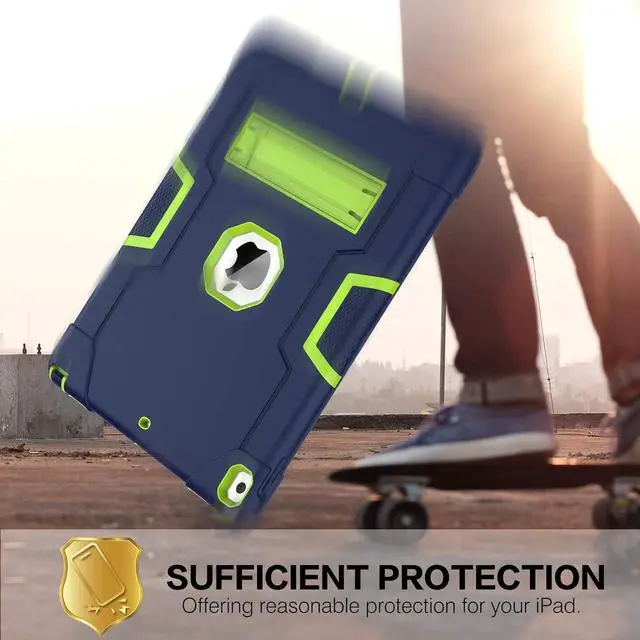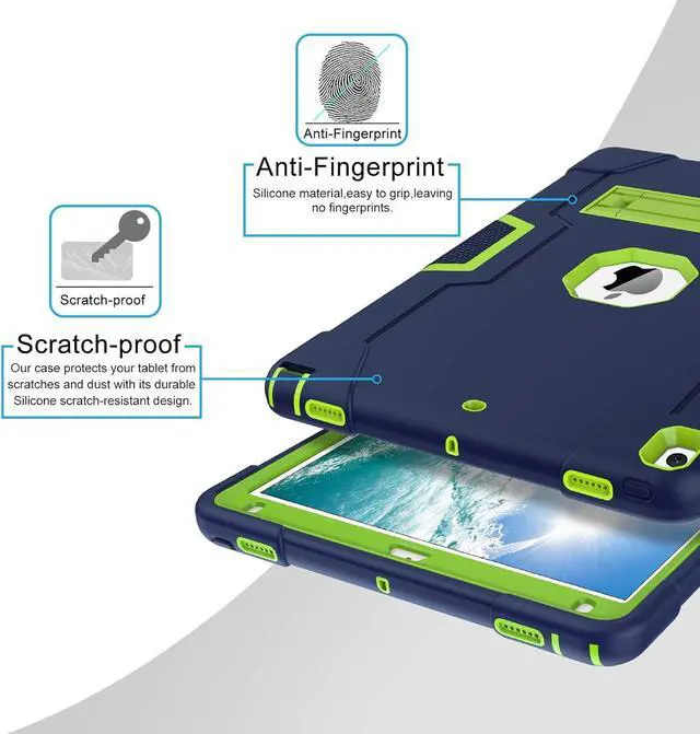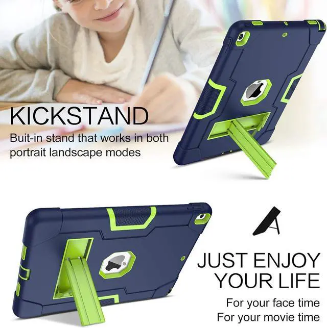 Full Body Protection & Premium Materials --- This iPad case is made of hard plastic frame + PC inner shell + durable soft Silicone (NO screen protector), the safe materials are also friendly to kids. 3-layer full body protection structure, which provides perfect protection for your iPad against drop, scratch, shock and dust.