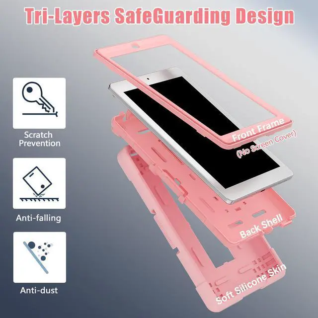 Full Body Protection & Premium Materials --- This case is made of hard plastic frame + PC inner shell + durable soft Silicone(NO screen protector), the safe materials are also friendly to kids. 3-layer full body protection structure, which provides perfect protection for your tablet against drop, scratch, shock and dust.