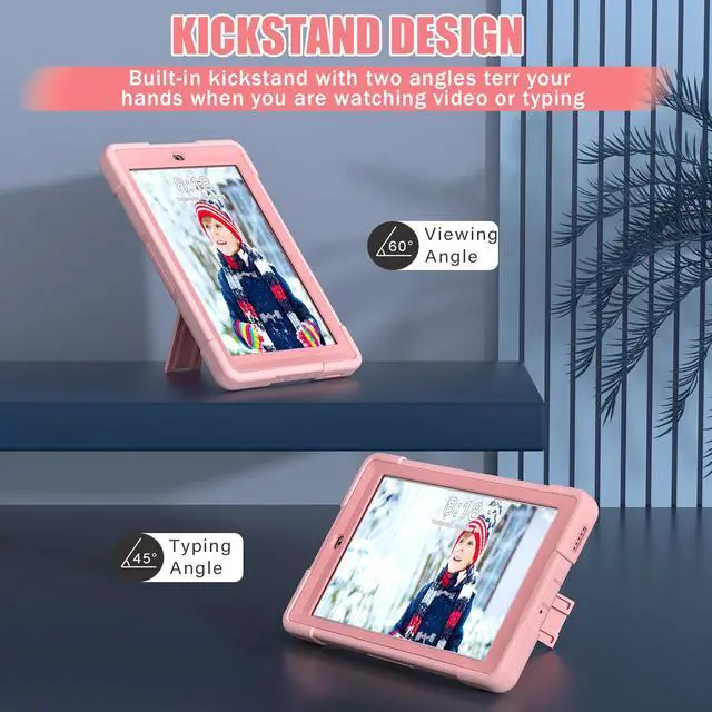 Ptorective Case with Built-in Kickstand --- The protective case with built-in sturdy kickstand, offers you 2 angles like viewing and typing when you are playing or working. Free your hands and enjoy your watching or facetime with the tablet case.