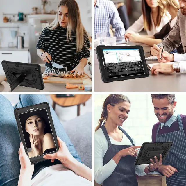 Ptorective Case with Built-in Kickstand --- The protective case with built-in sturdy kickstand, offers you 2 angles like viewing and typing when you are playing or working. Free your hands and enjoy your watching or facetime with the tablet case.