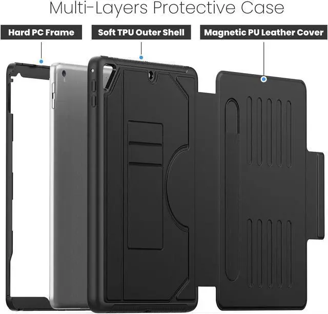 SHOCKPROOF PROTECTION --- Soft anti-slip TPU and quality PU leather makes Your iPad has better shock resistance, providing maximum protection against accidental drops, scratches, shocks and scuffs. Exquisite craftsmanship makes you more confidently when carrying our case.