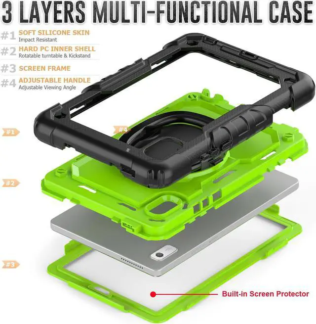 Shockproof + Screen Protector:This Tablet Case is designed with durable anti shock material, soft silicone, hard plastic shell and built-in screen protector. This sturdy case can keep your tablet safe from shock, drop, scratch or accidental damages in daily use.